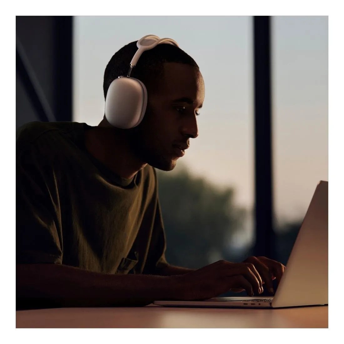Los AirPods Max reinventan los audífonos de diadema. El controlador dinámico diseñado por Apple te ofrece un sonido inmersivo de alta fidelidad. Cada elemento, desde la diadema hasta las almohadillas, está pensado para brindarte un ajuste excepcional. La Cancelación Activa de Ruido líder en la industria bloquea el ruido exterior, y el modo Ambiente te permite escuchar todo lo que ocurre a tu alrededor. Además, el audio espacial con seguimiento dinámico del movimiento de la cabeza crea un sonido envolvente como si estuvieras en el cine(1).